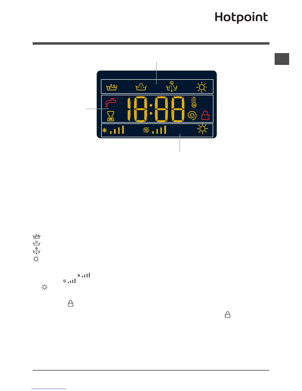 The icons corresponding to “temperature”, “spin” and “drying” (working from the left) are displayed in section C.