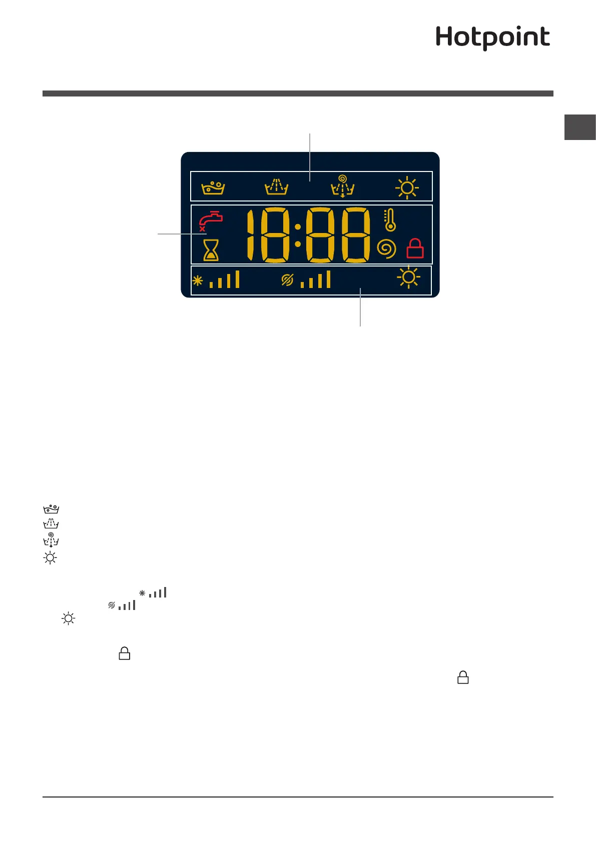 The icons corresponding to “temperature”, “spin” and “drying” (working from the left) are displayed in section C.