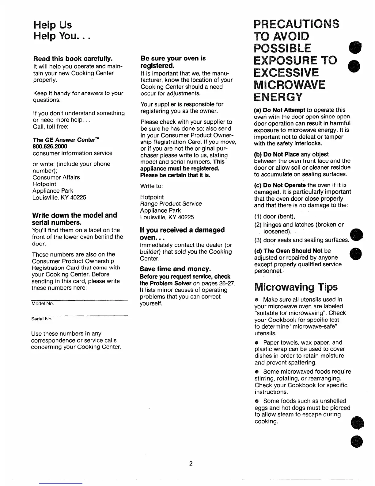 concerning your Cooking Center.