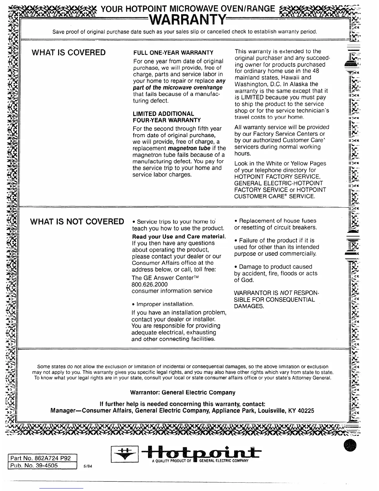 Save proofof originalpurchasedatesuchasyoursalesslipor cancelledcheck to establish warranty period.