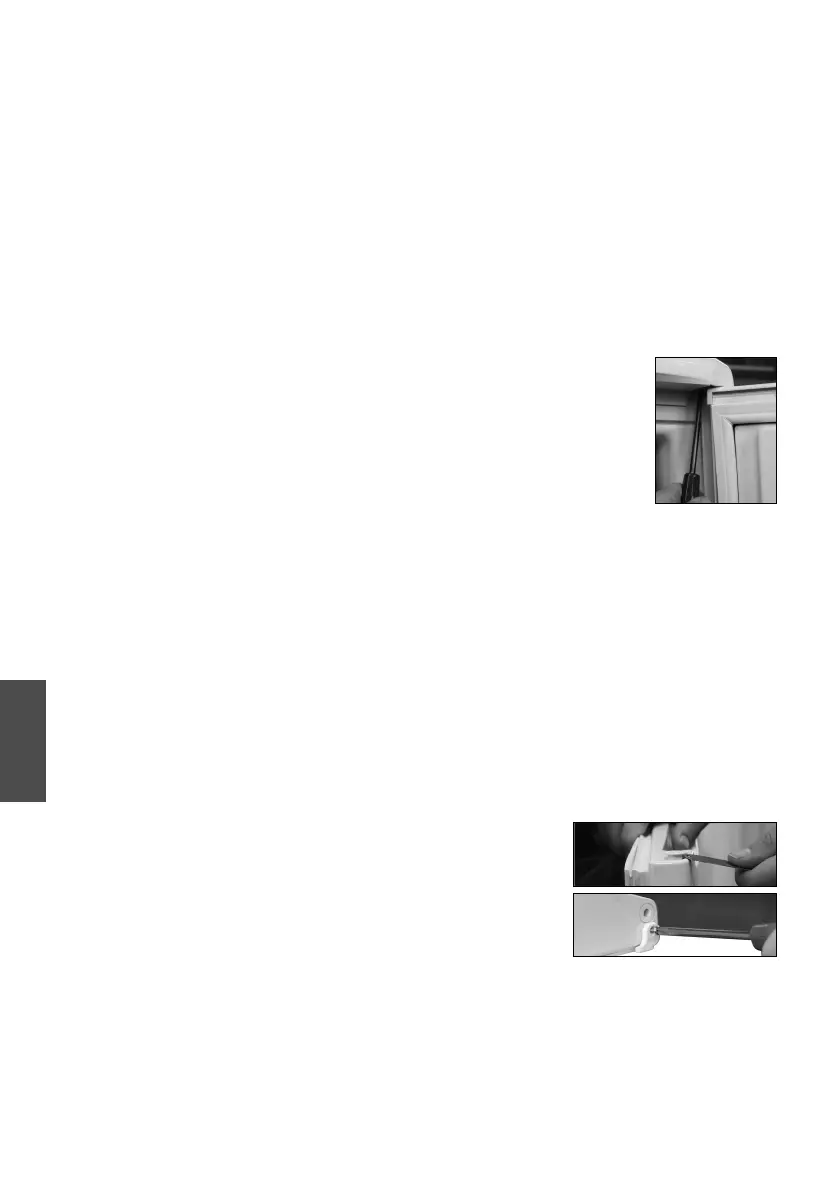 pin and support the door whilst screwing the top hinge into position. Ensure