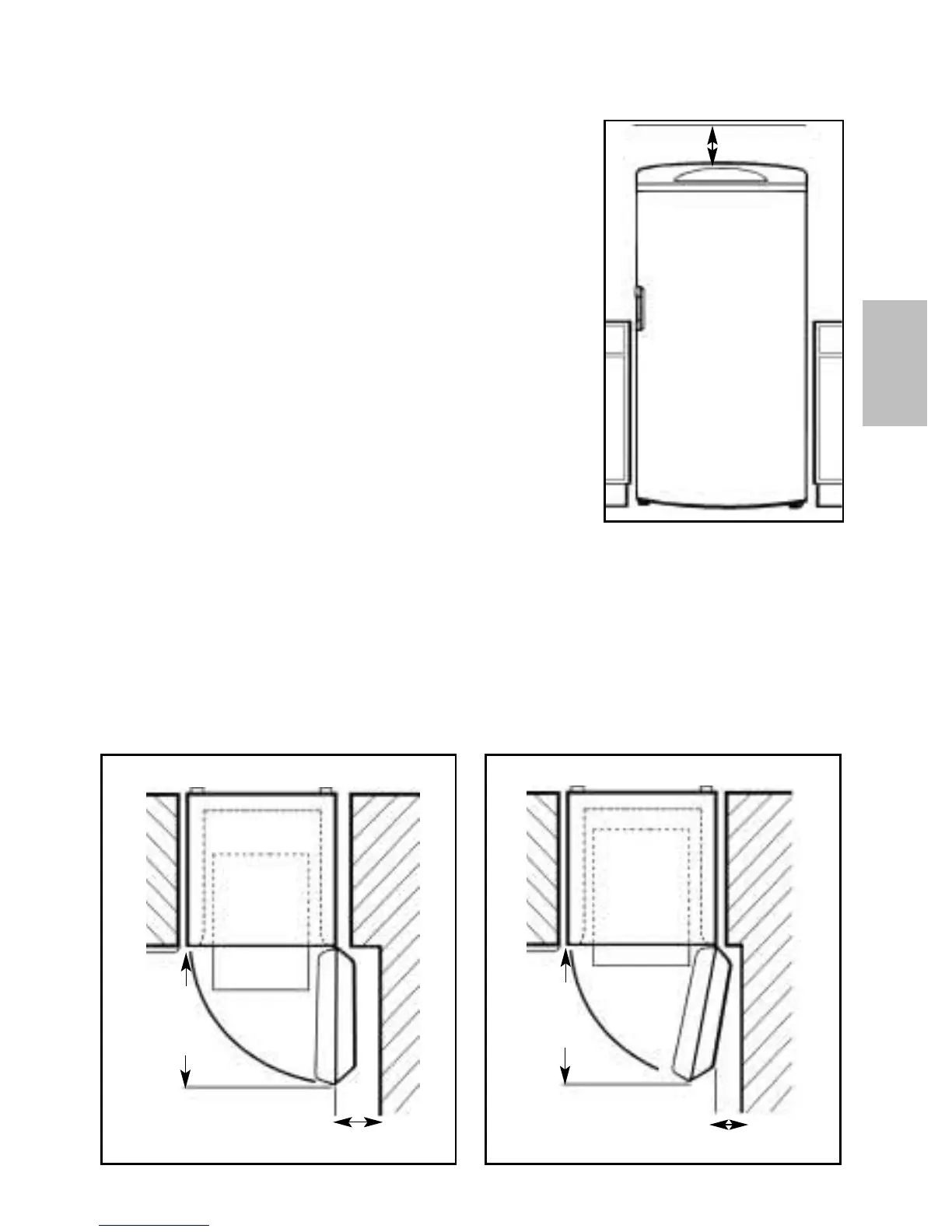 The fridge needs a space of 600mm (24 inches) in front to allow the door to open.