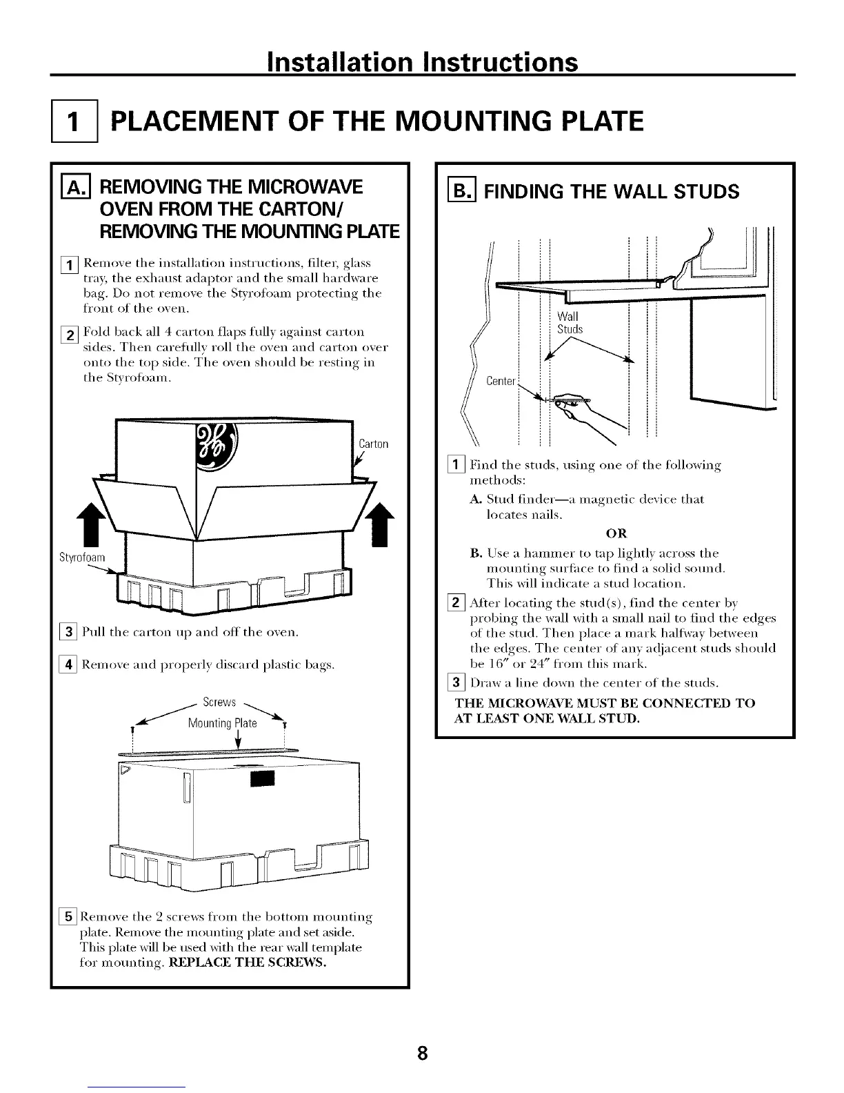 THE MICROWAVE MUST BE CONNECTED TO