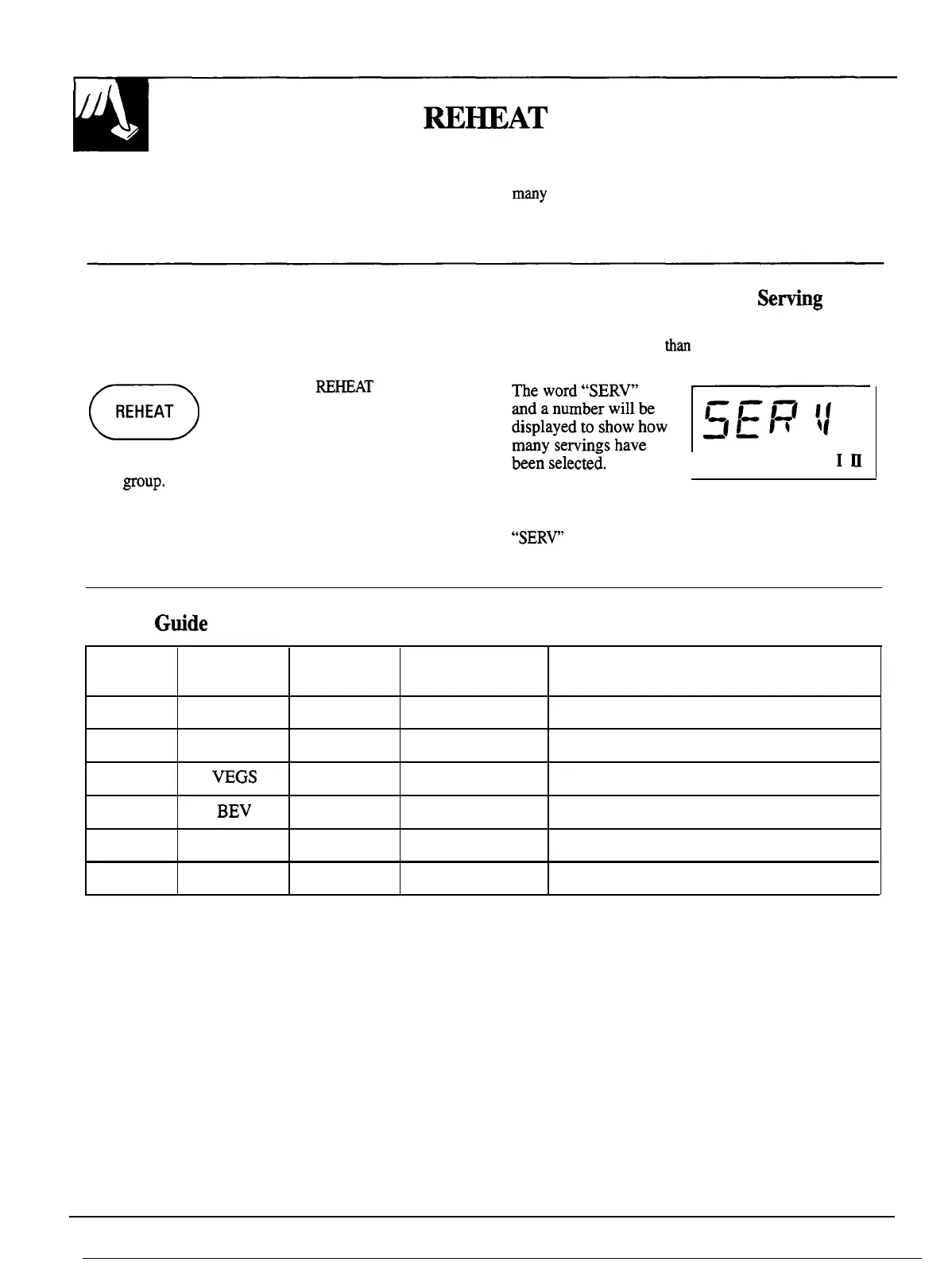 popular foods. See the Reheat Guide below.