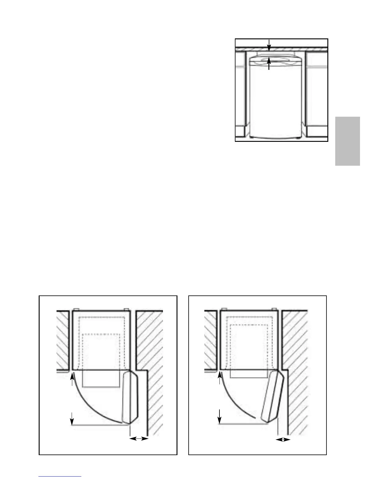 The door hinge side can be changed to make it easier to open (see ‘Door Reversal’