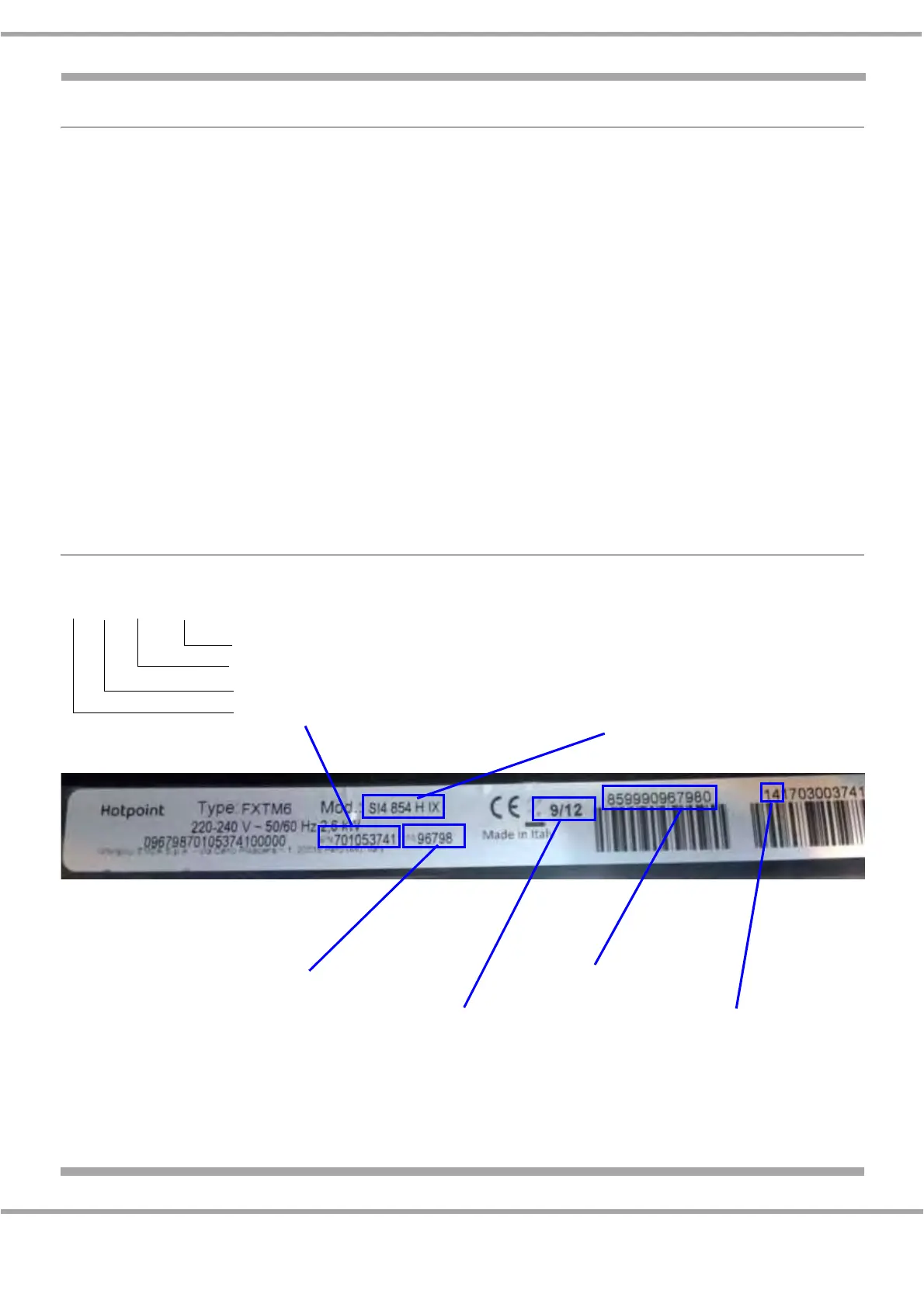 9 Digit Serial Number Example - Hotpoint Branded