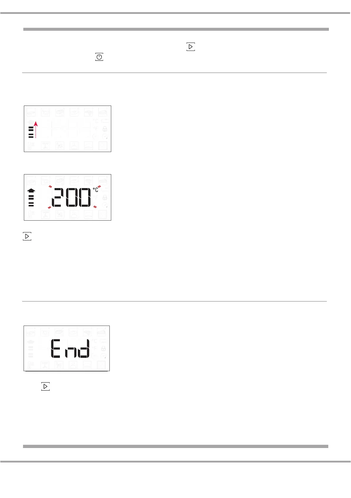 Once this phase has finished, an audible signal will sound and the display will indicate that the oven