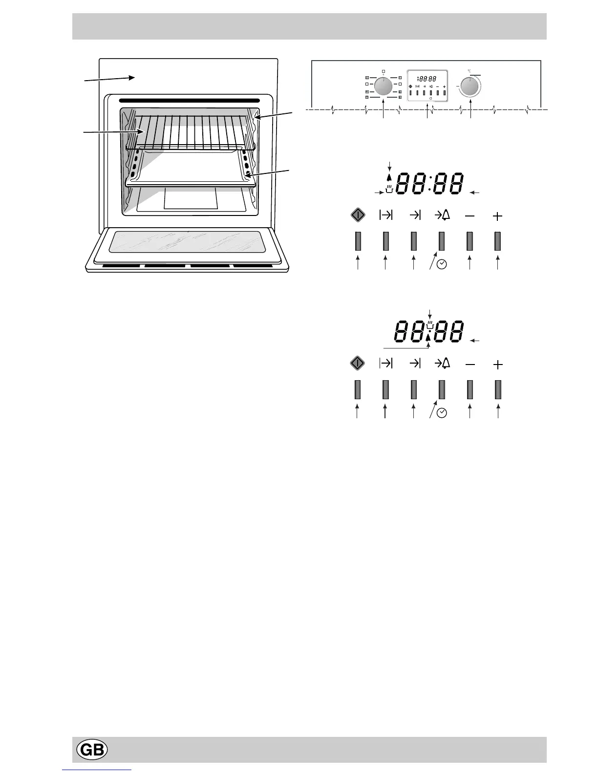 H. Guides for sliding the shelf or grill pan/baking tray in