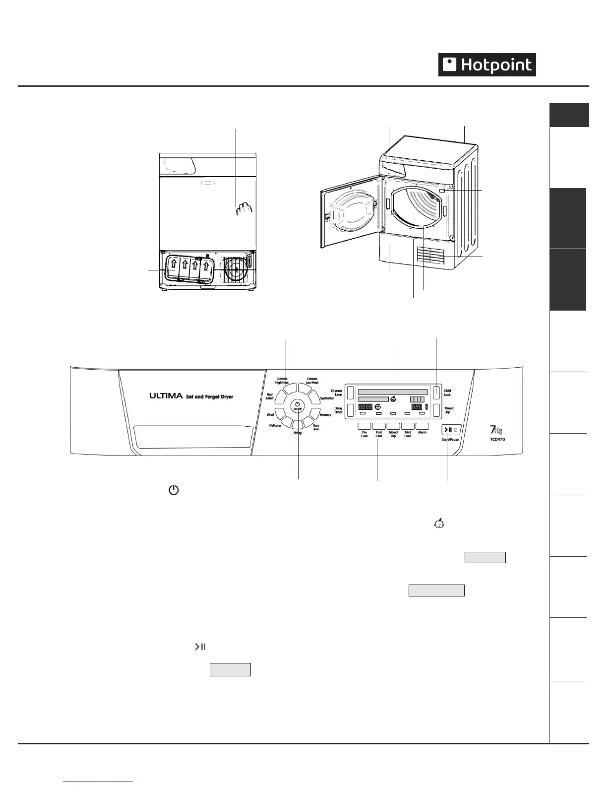 The ON/OFF button/light : If the dryer is running