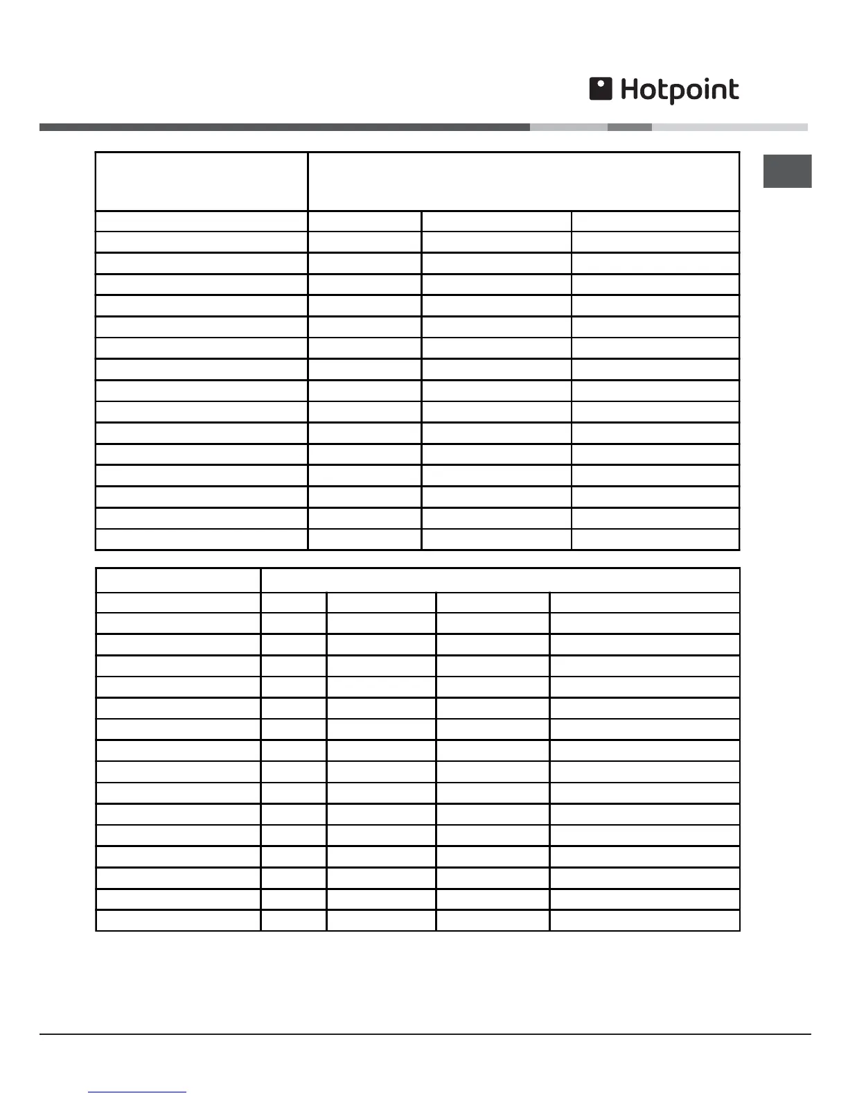 Hotpoint UE47X - Oven Temperature Charts - Baking; Main Fan Oven Cooking; Top Oven Convection Cooking