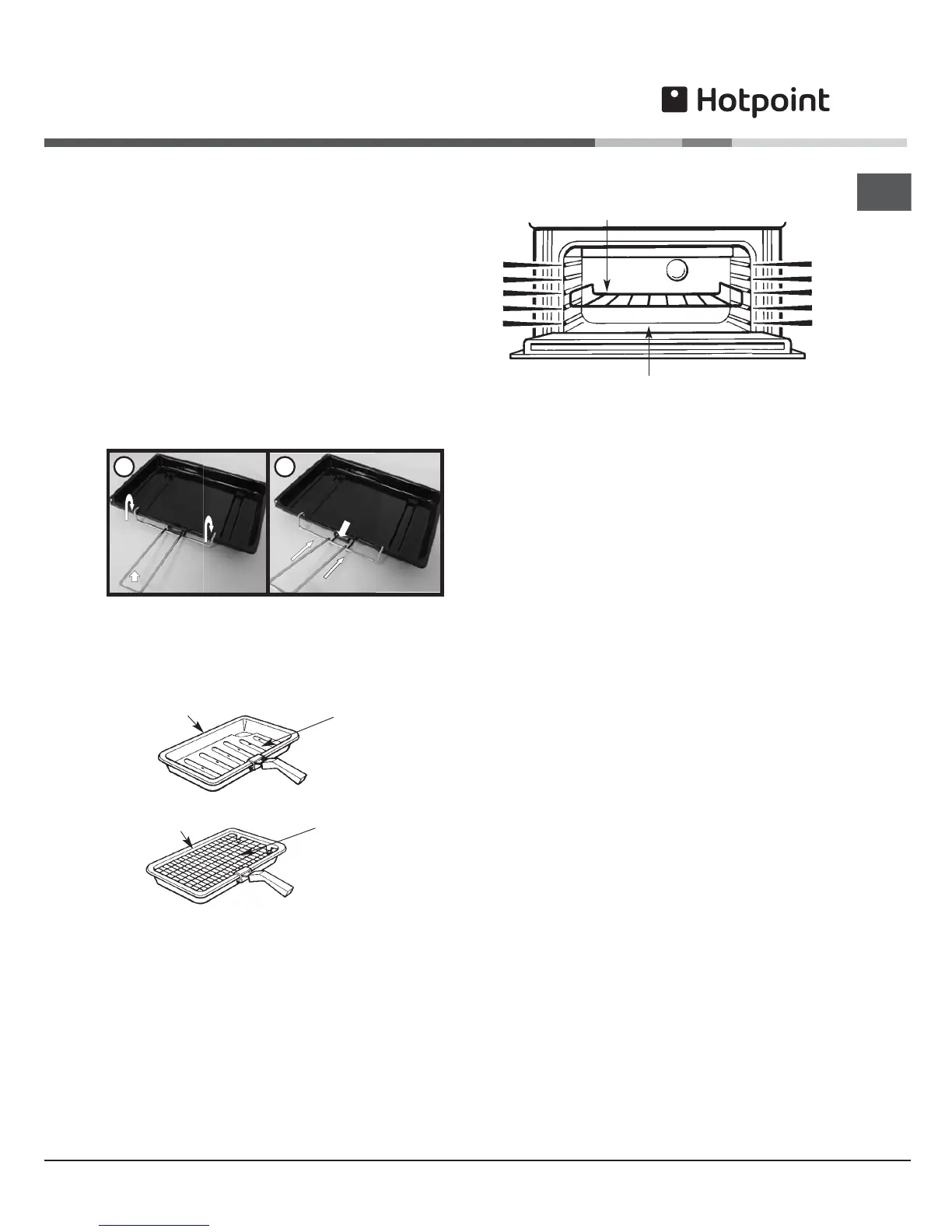 Hotpoint UE47X - Grill Pan and Handle; Using the grill pan kit; Top Oven Shelf Positioning for Grilling