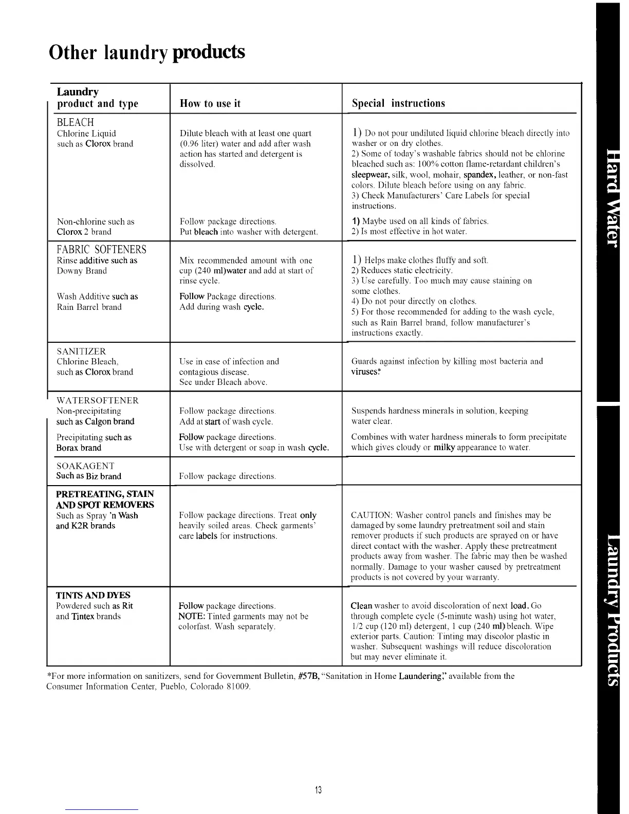 *For more information on sanitizers, send for Government Bulletin, #57B, "Sanitation in Home Laundering',' available from the