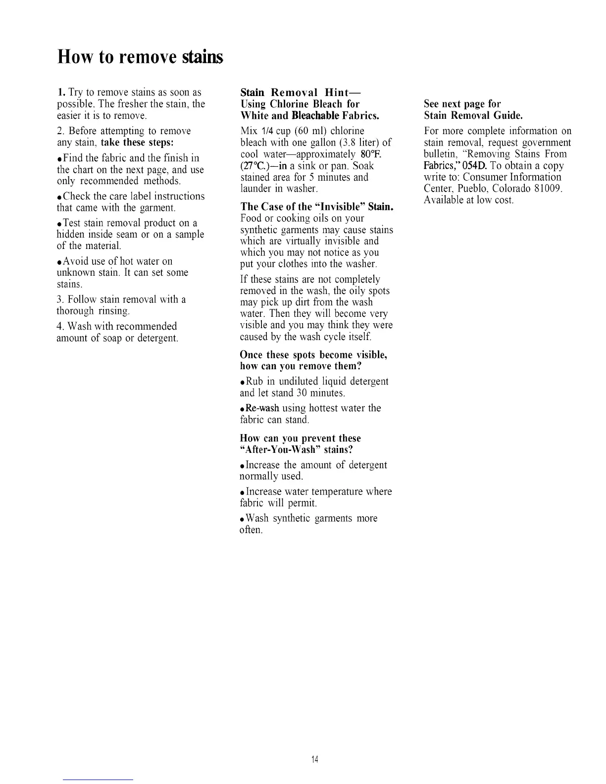 bulletin, "Removing Stains From