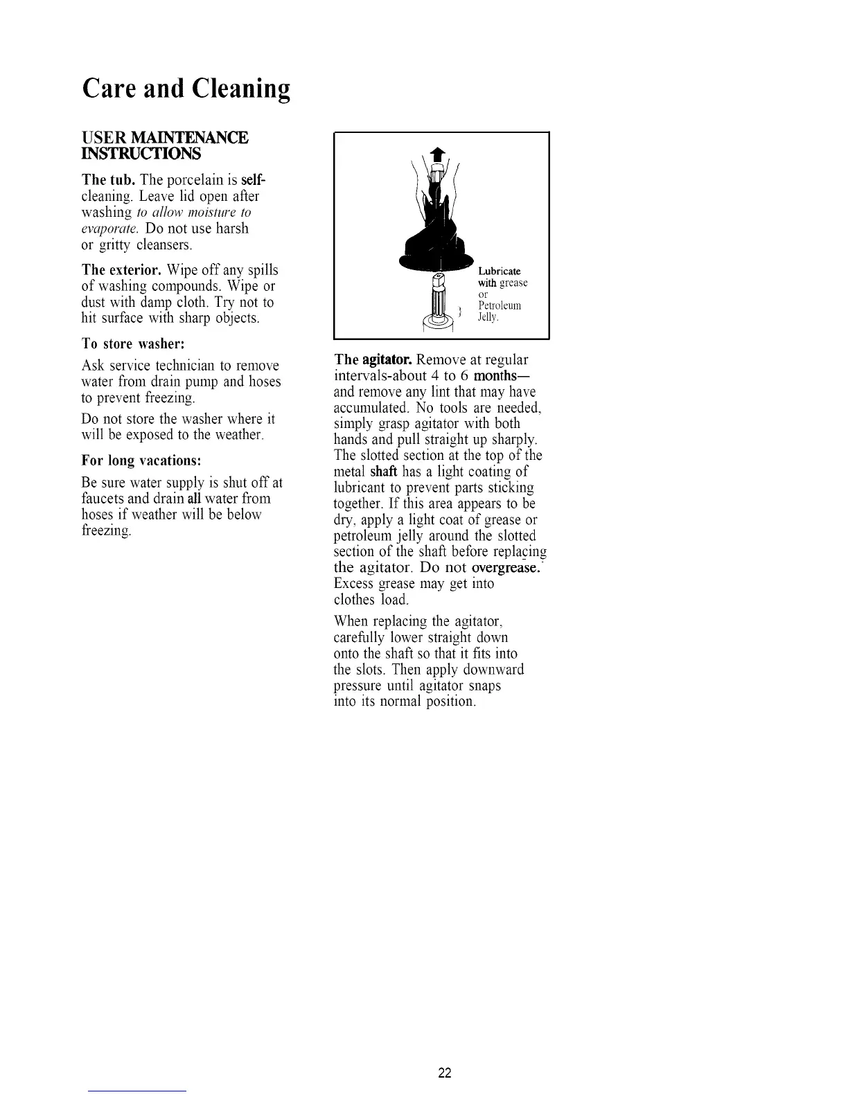 the agitator. Do not overgrease.