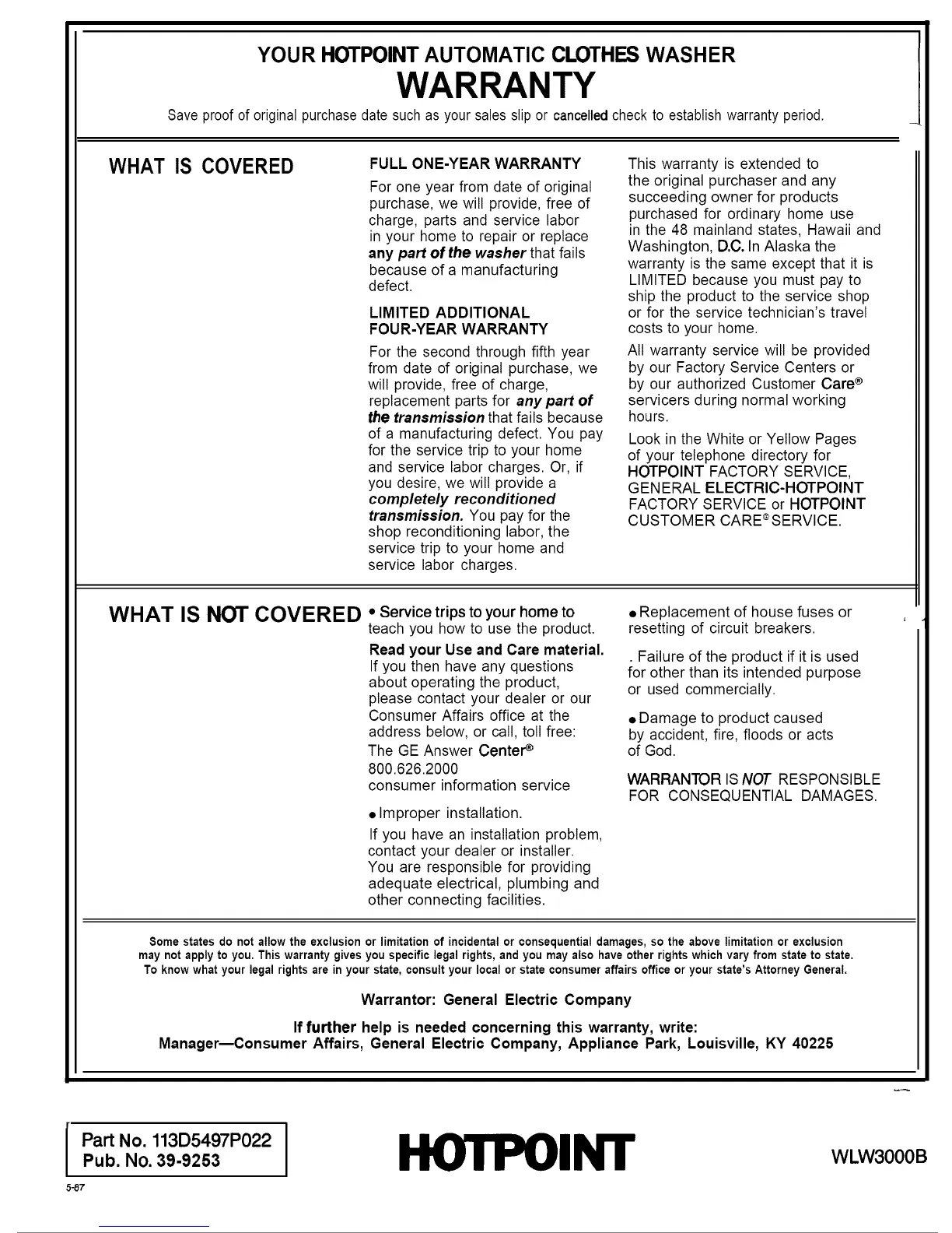 YOUR HOTPOINT AUTOMATIC CLOTHES WASHER