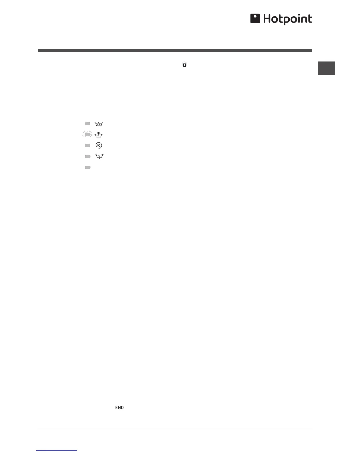 9. At the end of the wash cycle the indicator light will switch on. The DOOR LOCKED indicator light will switch off, indi-
