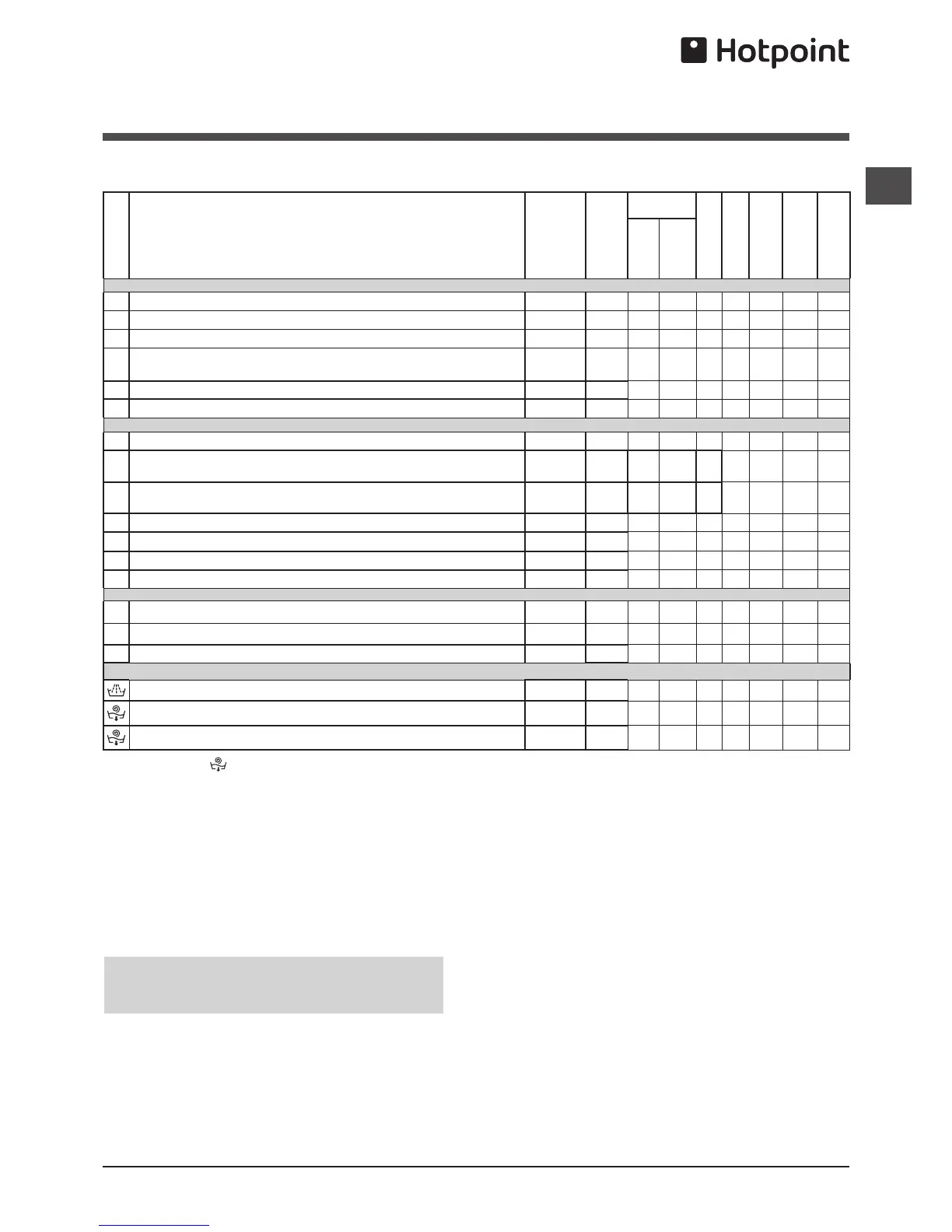 Table of programmes and wash cycles