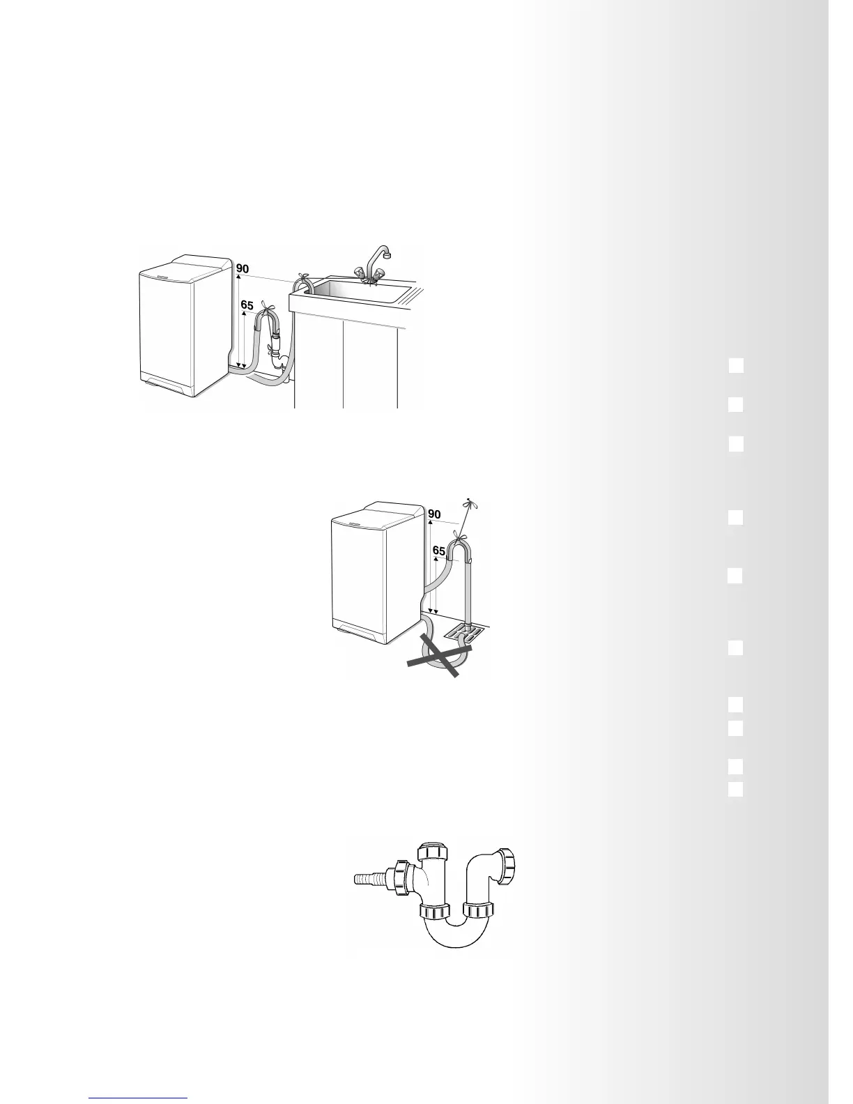 Connect up the drain hose, after fitting the hooked end support supplied in the