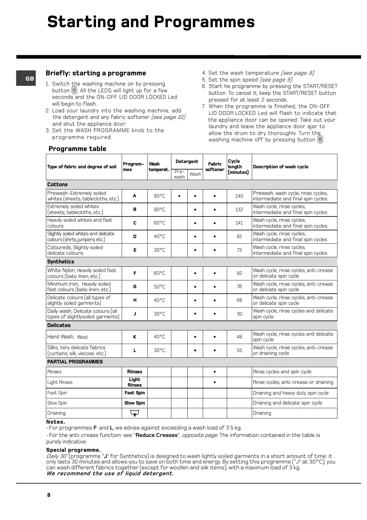 -For programmes F and L, we advise against exceeding a wash load of 3.5 kg.