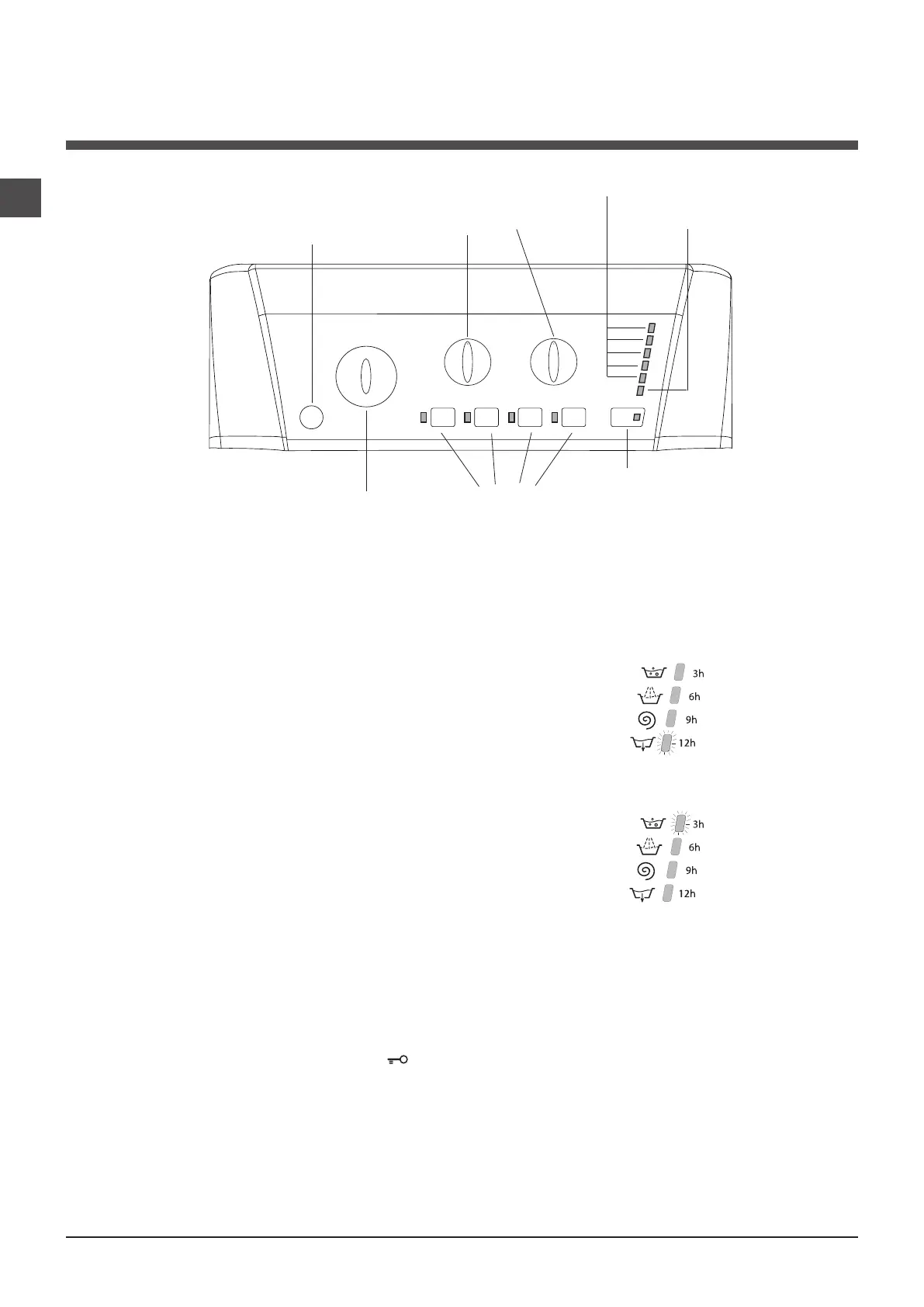 WASH CYCLE knob: programmes the wash cycles. Du-
