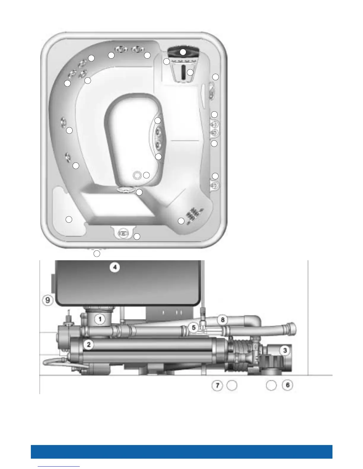 K. Heater return and spa drain