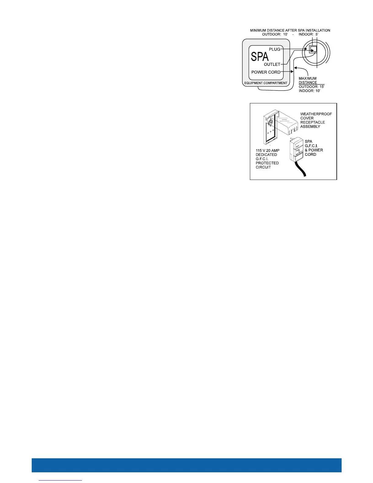 from the spa. If the spa is being installed indoors, the outlet should be no closer than 5 feet and no