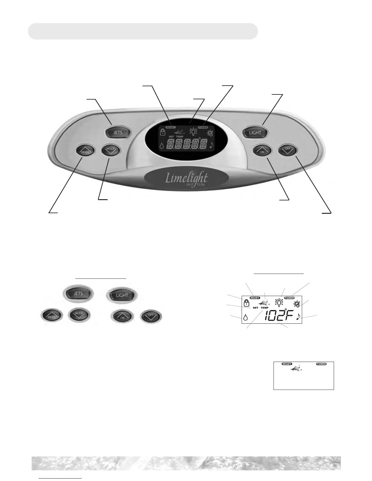 and several other functions depending on what has been added to your hot tub. The control panel display responds to let you know you’ve