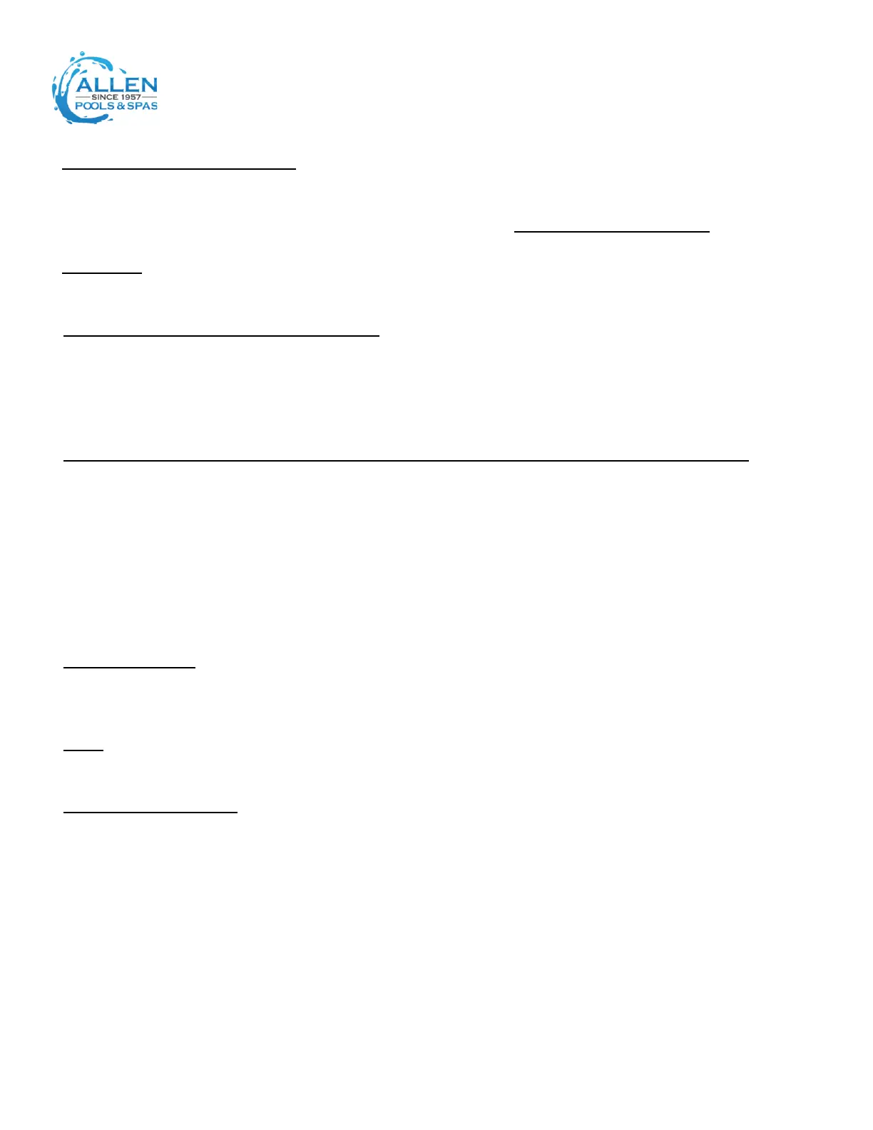 INSTALLATION NOTE: Aer the spa has been installed by the dealer’s delivery crew, your electrician can connect the