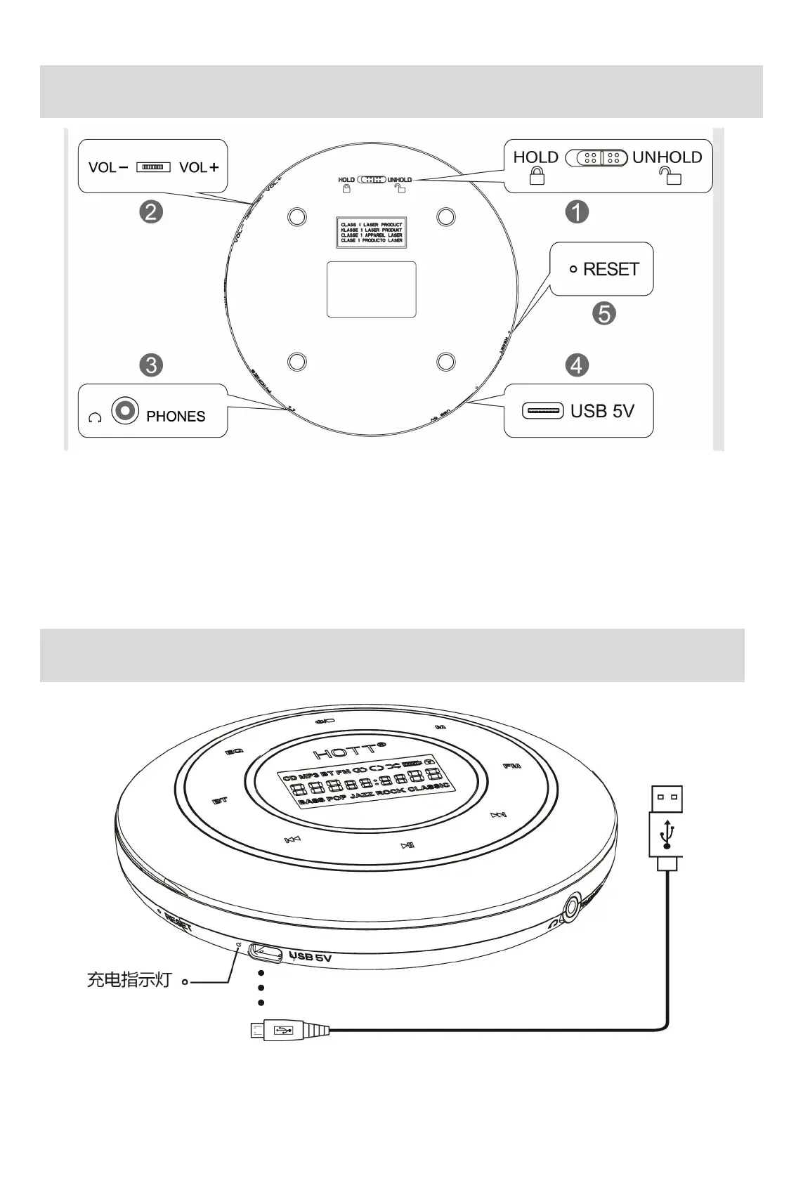 VOL-/ VOL+:音量控制开关,播放状态下,可调节音量大小。