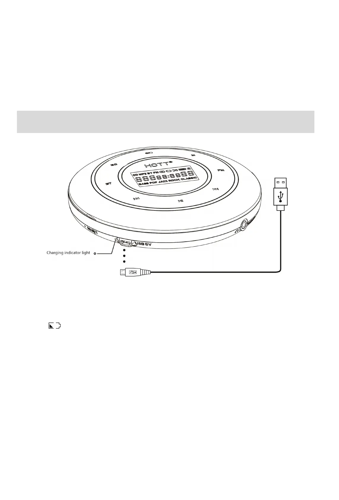 1. When is visible, the charge is low and a power source is needed for further use.