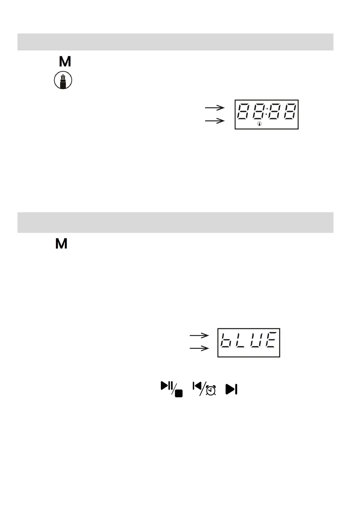 2. A voice prompt will be given saying “Bluetooth Mode”, and the LED will display “bLUE” in flashing