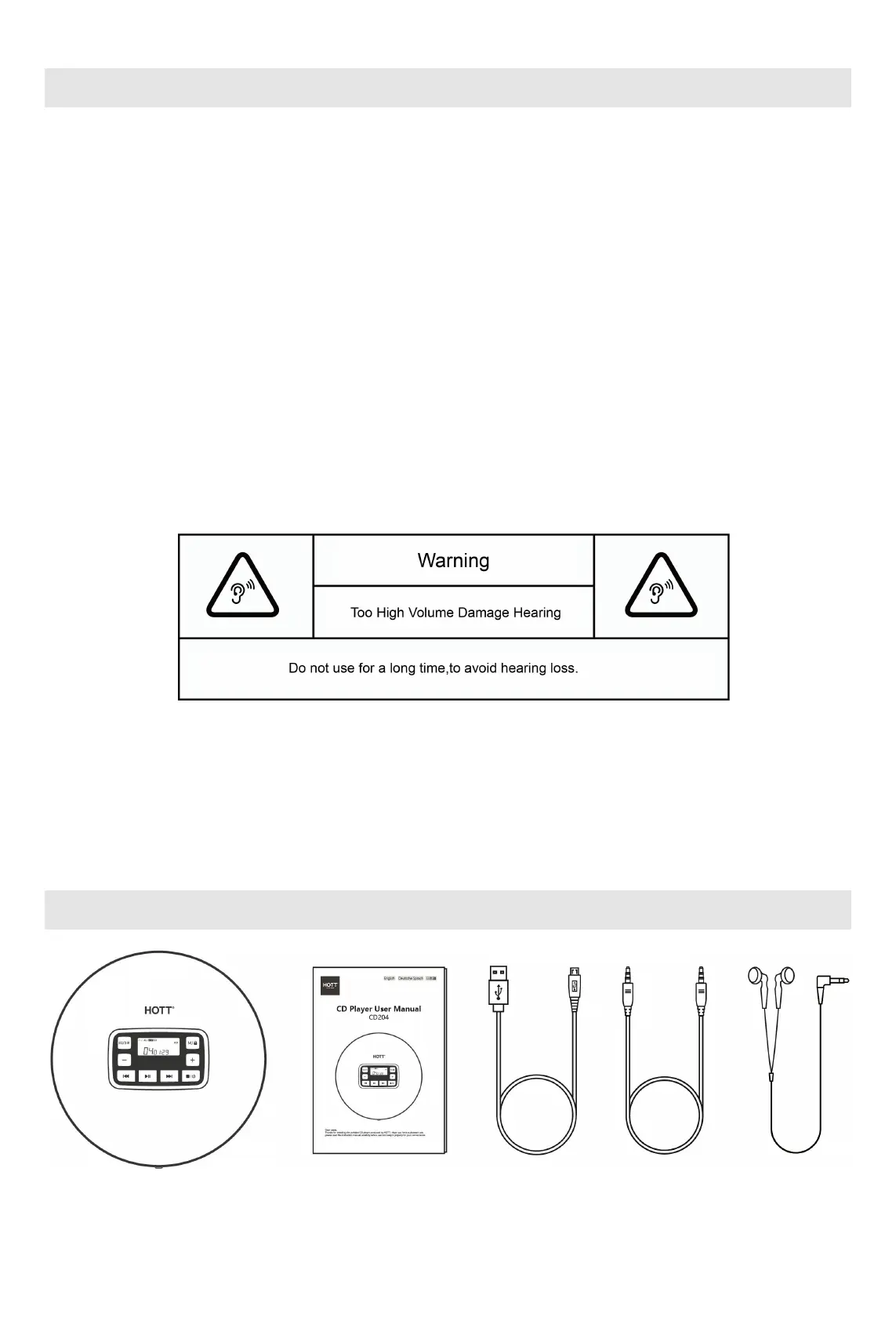 CD player Manual Power cable Audio cable Headphone