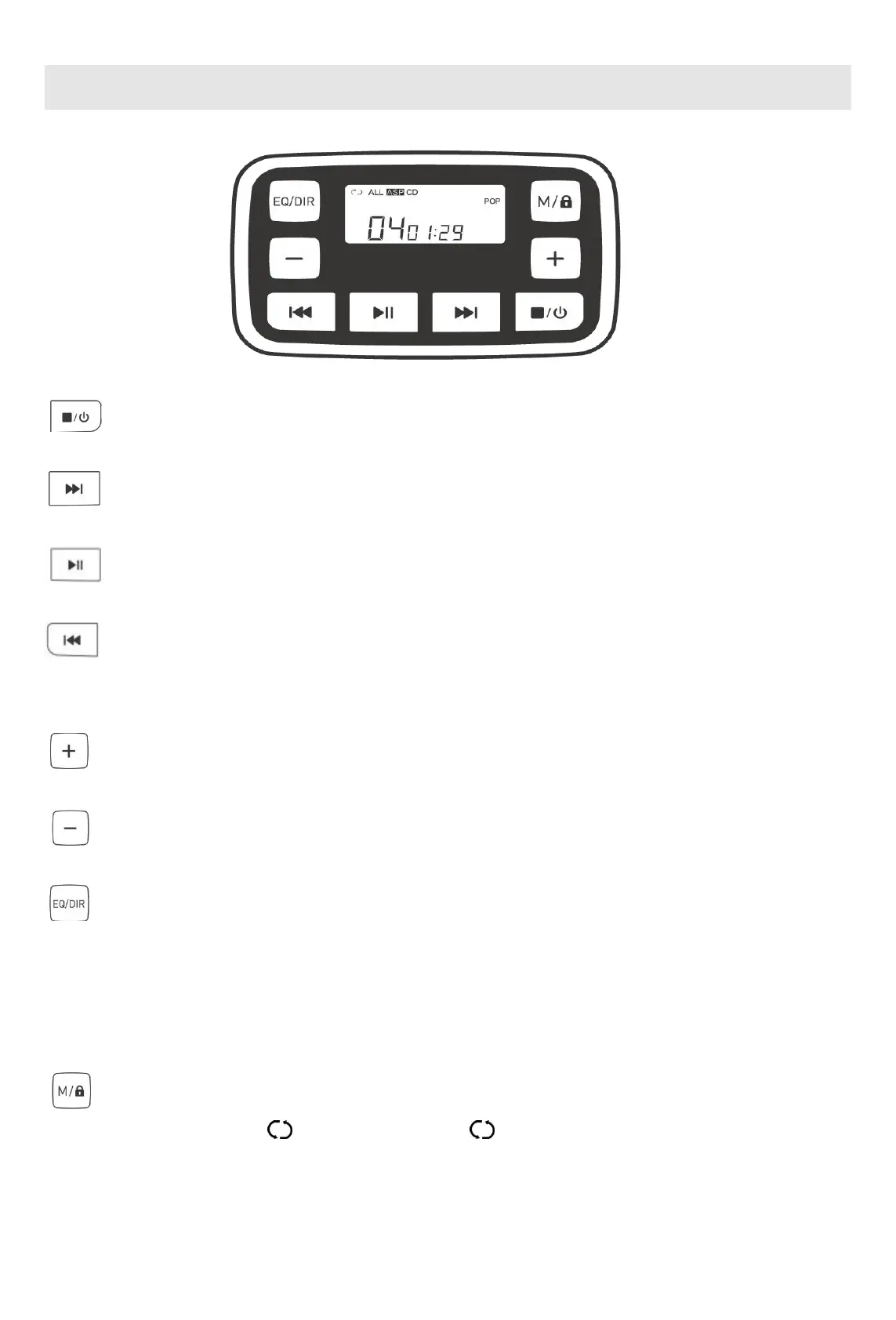 DIR キーを長押しすると、トラックセクションをスキップして選択再生します。DIR 機能のない CD ディスクで、DIR キーを押して