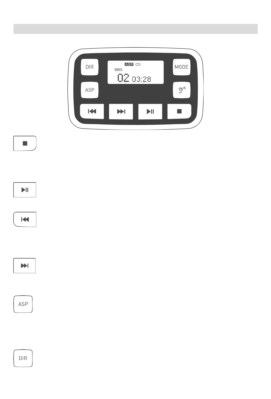 : Einschalten/Anspielen / Anhalten Nach dem Einschalten drücken Sie die Taste zum