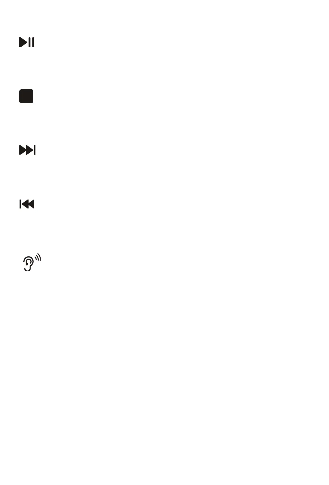 - 关机状态下,第一次按为开机,停止状态下按一次为播放。