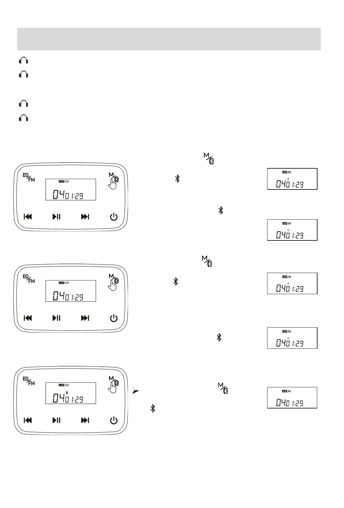 2) 蓝牙图标 闪烁,进入蓝牙搜索状态;
