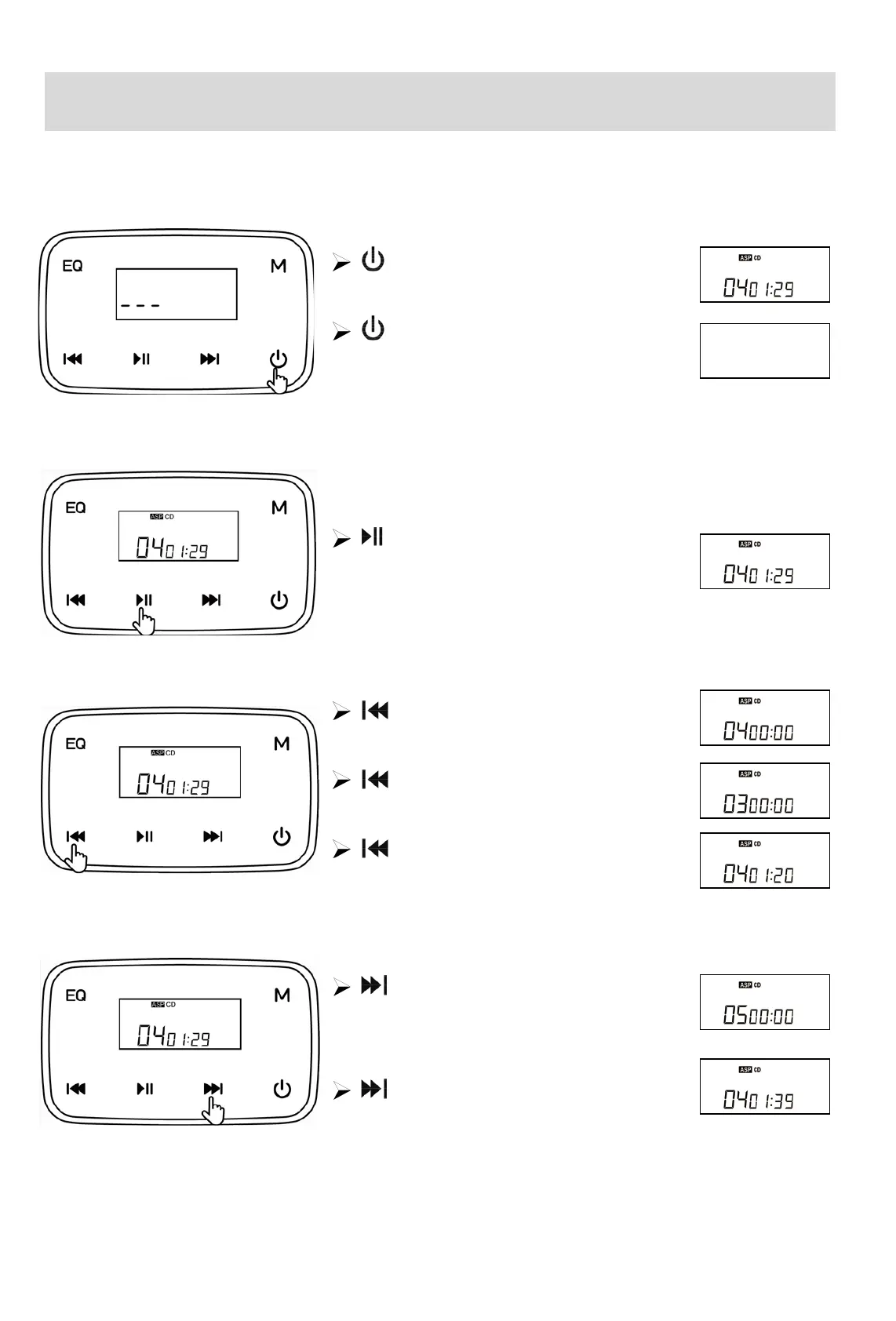 2 回短く押すことで前の曲にス