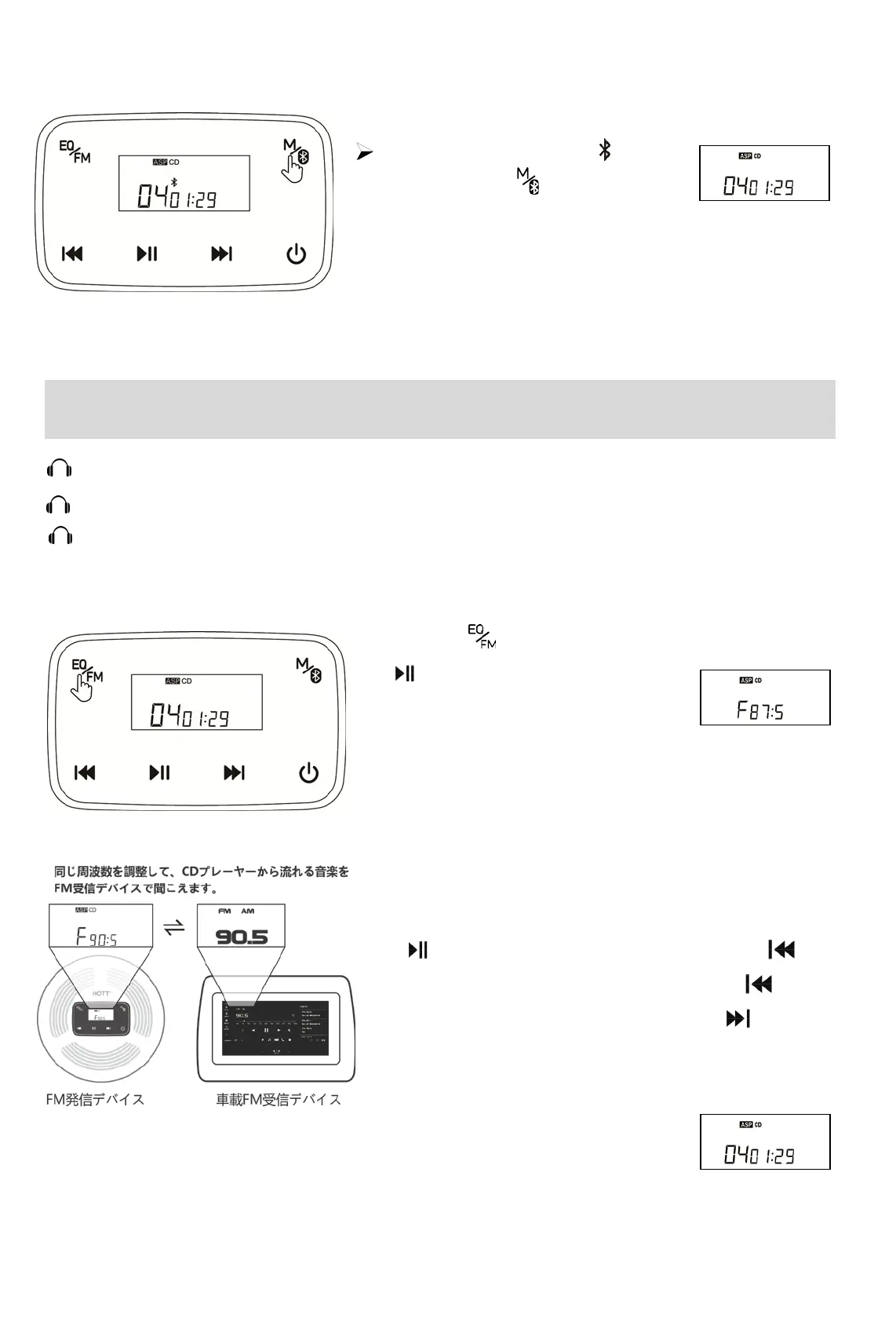 3)FM トランスミッターと車の FM ラジオの周波数を合