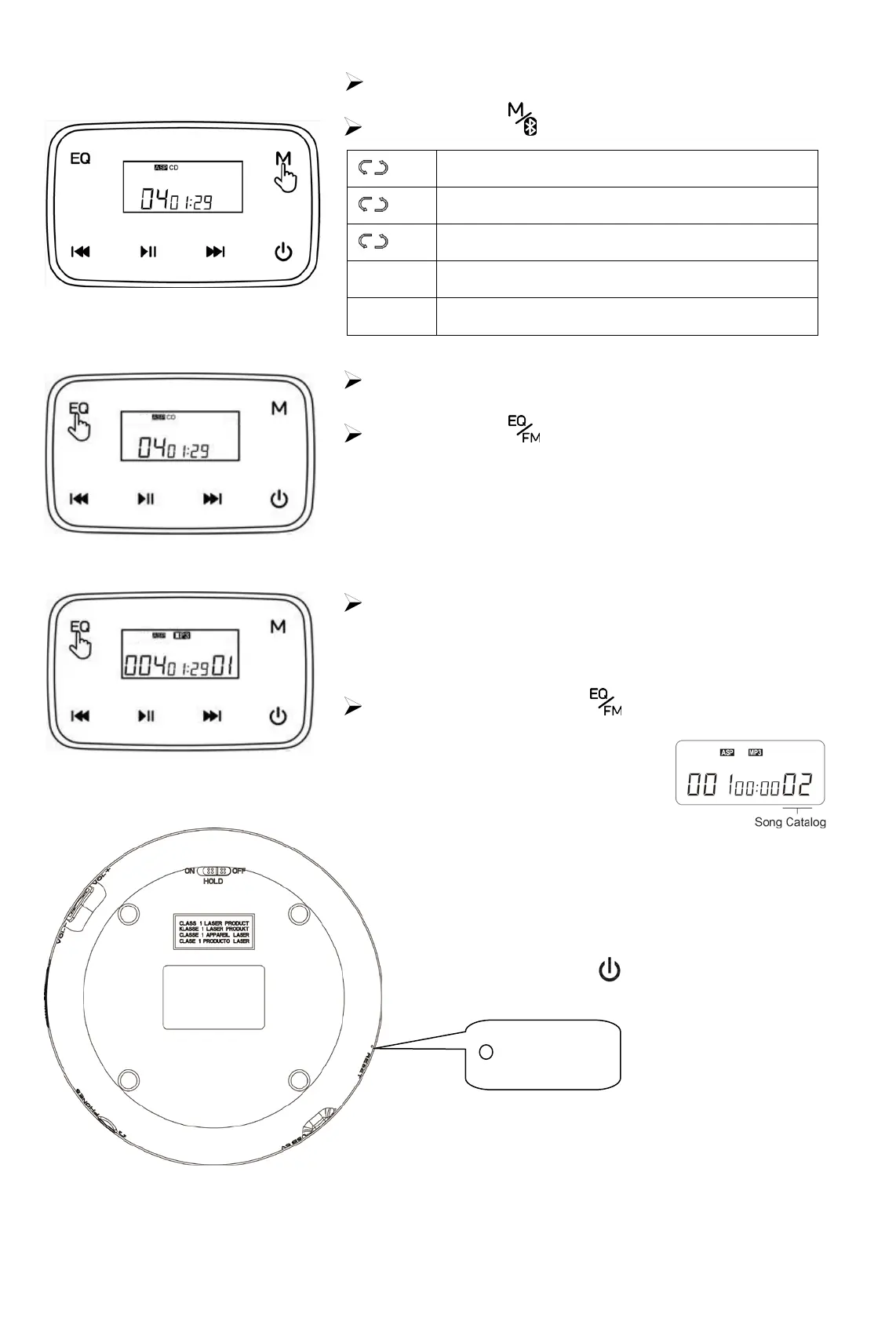 5. Play mode CD903: Press M to switch play mode