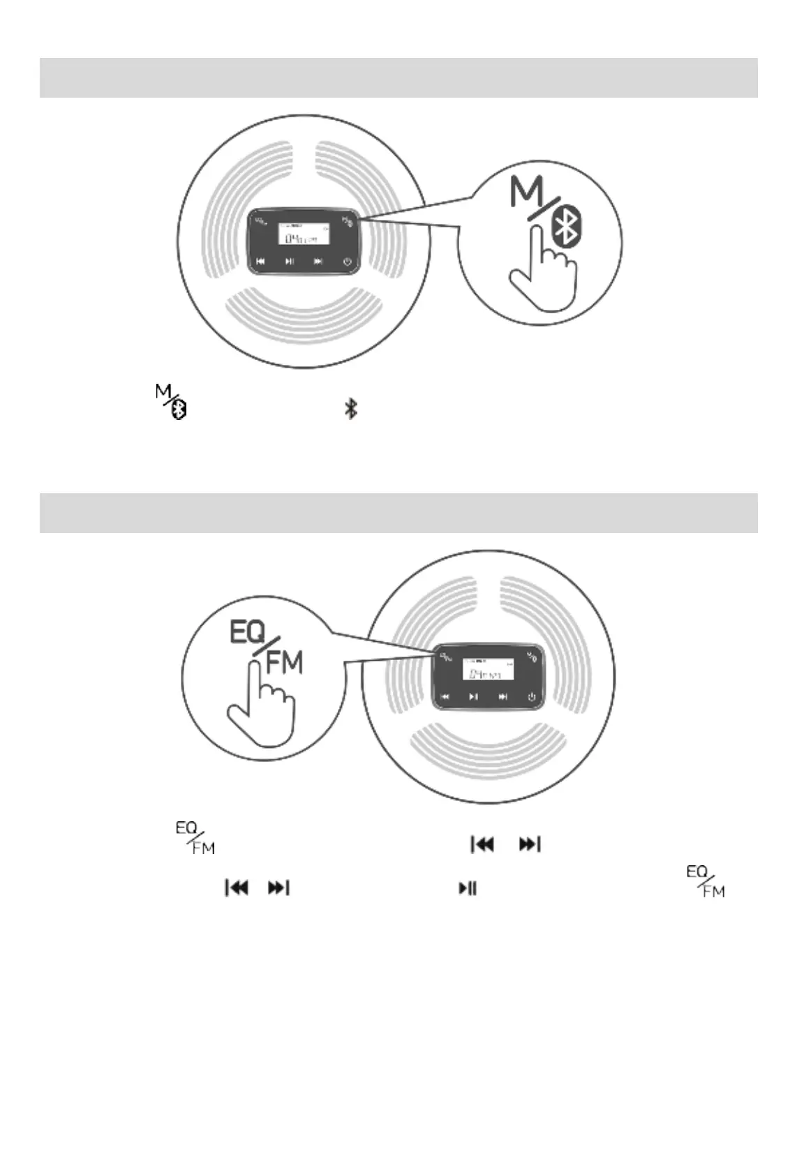 按键进入 FM 发射状态,短按 或 ,可调节频段(频段范围