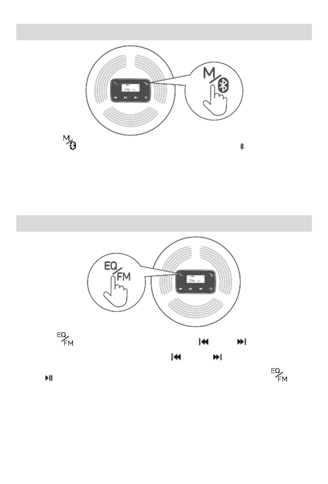 帯域に調整して、曲を正常に聴くことができる。Bluetooth と FMは単一でしか操作できませんの