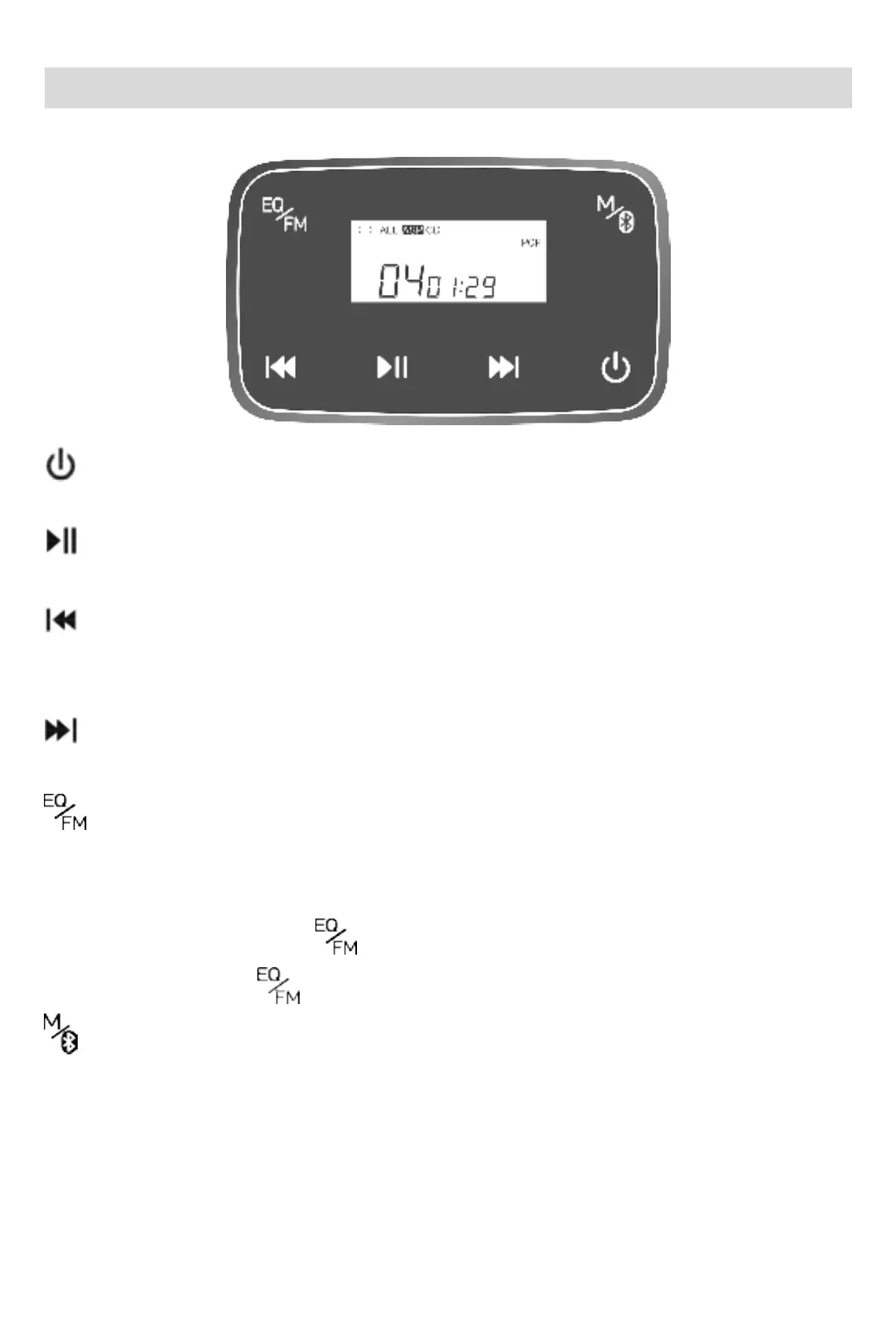 In the playing state, short press to skip to: Single cycle play; ALL: All songs are played in a loop;
