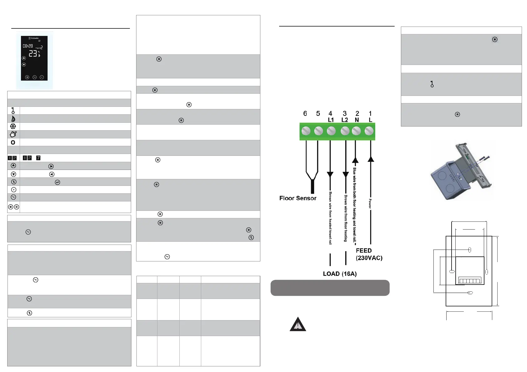 This thermostat is fitted with a real time clock. It is essential that the clock time