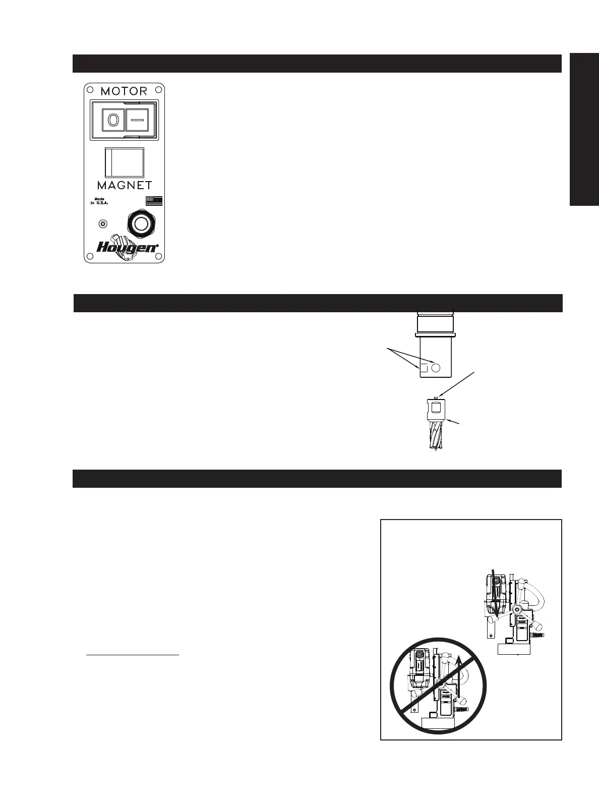 attraction diminishes with thinner material or rough surfaces, mechanical clamping of drill unit to the workpiece should be used when
