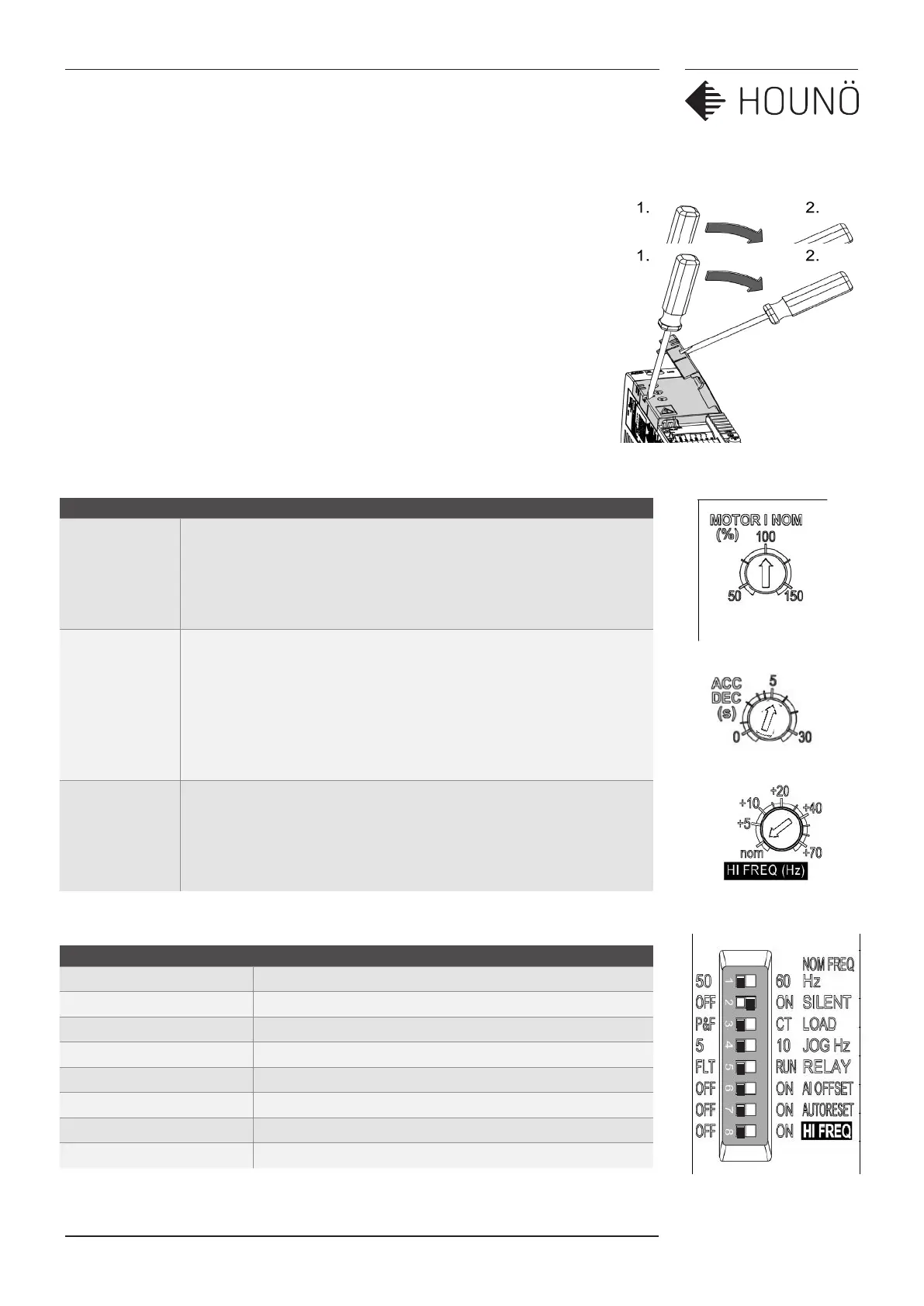 ADJUSTMENT OF THE THREE POTENTIOMETERS OF THE FREQUENCY INVERTER