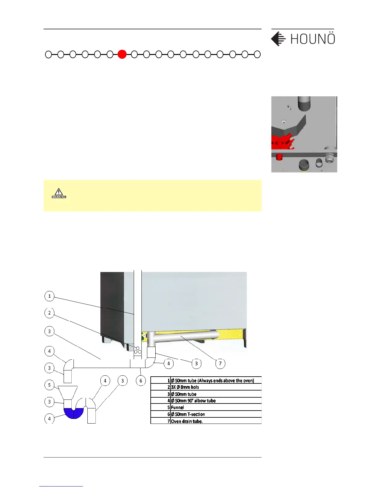 • The drain must be made of stainless steel or an equally temperature-resistant