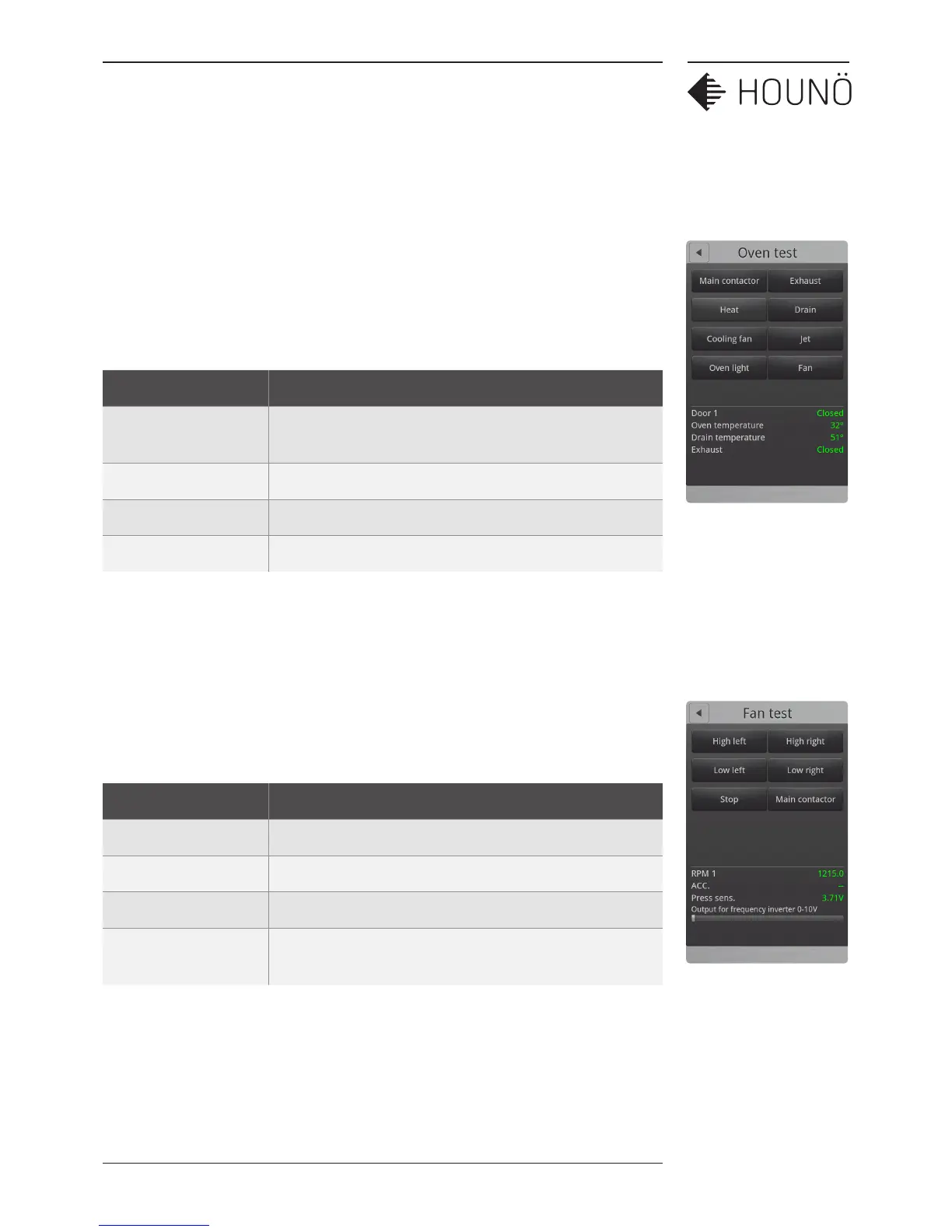 1. On the Technician display, touch Test functions, and then touch Oven.