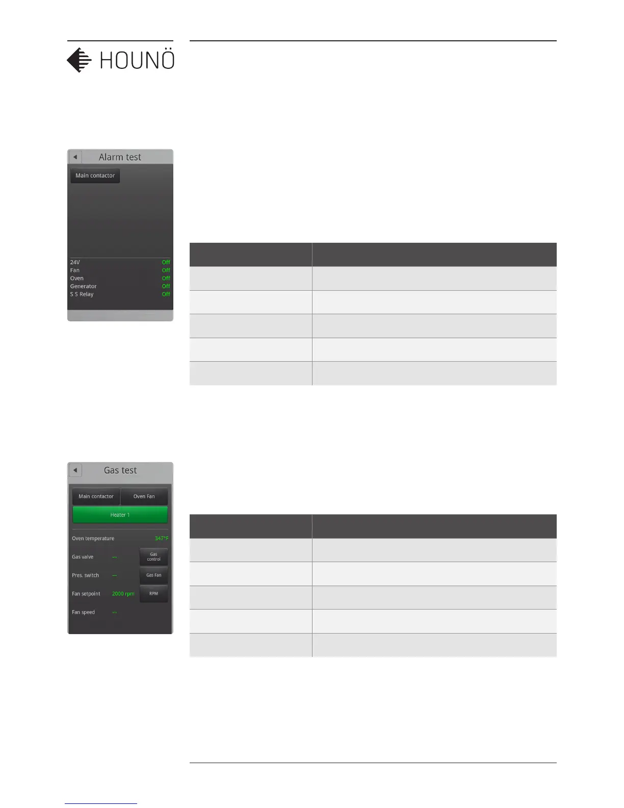 1. On the Technician display, touch Test functions, and then touch Gas.