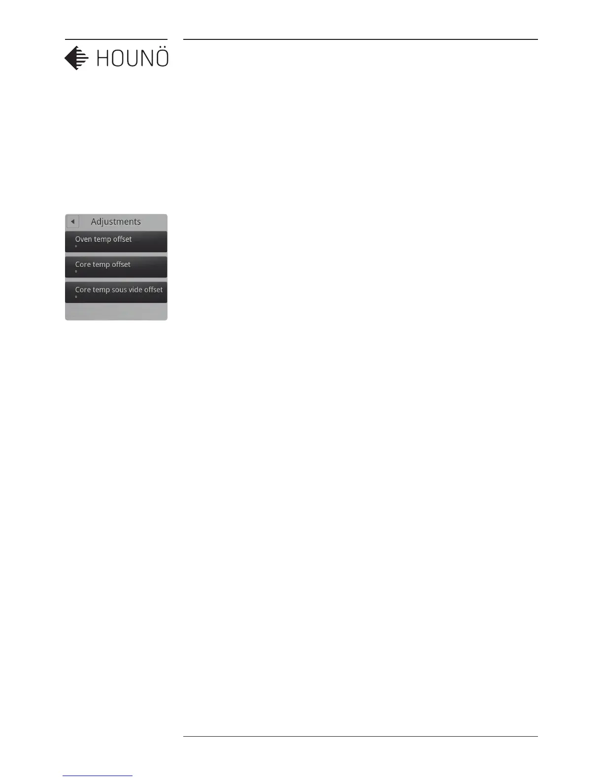Use this function to adjust the oven or the core temperature osets. This is useful when