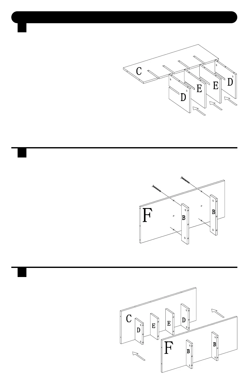 Insert shoe dividers (D/E) into slotted shoe panel (C) so that